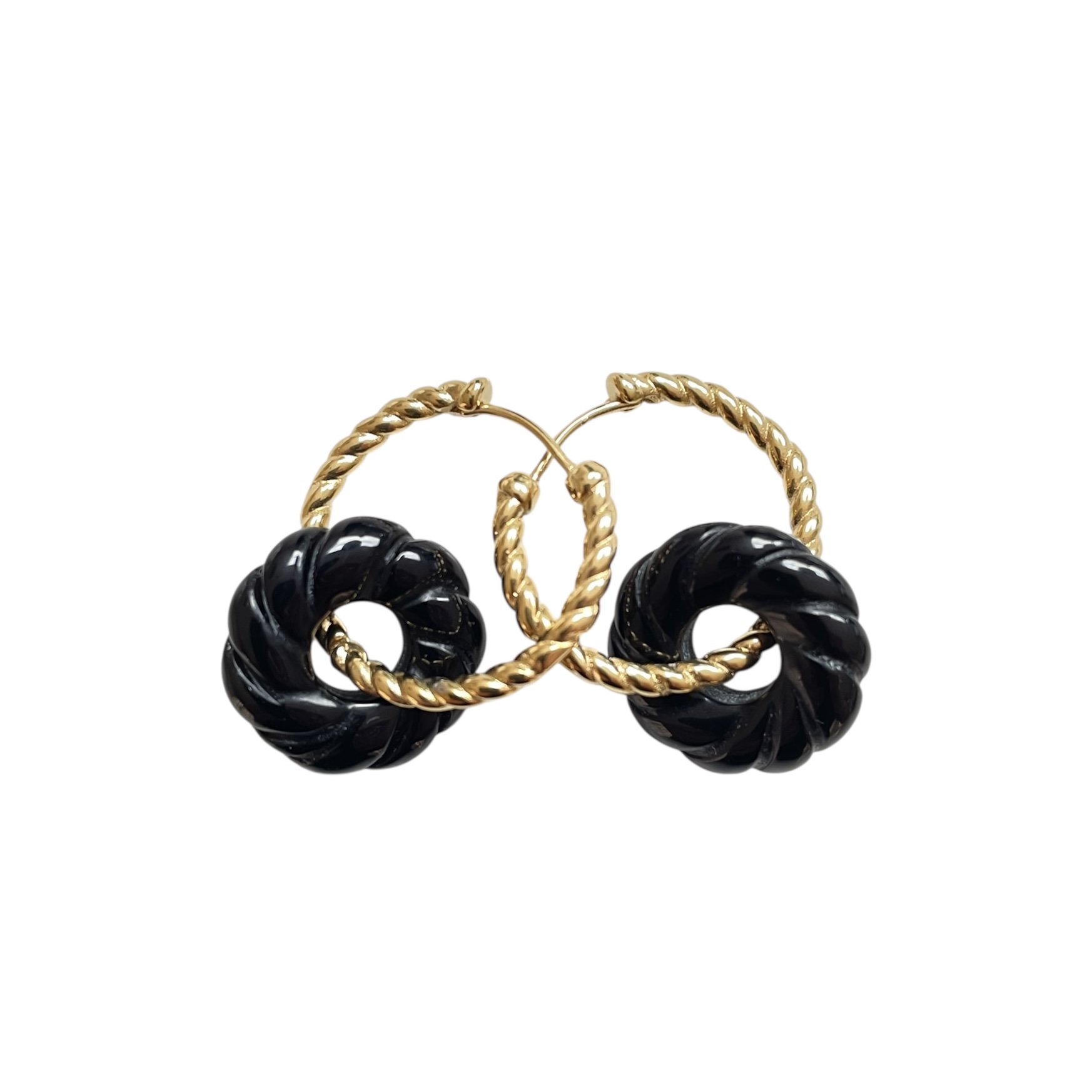 Deze ronde hangers hebben een doorsnede van 2cm en een gaatje in het midden. Ze staan mooi aan de oorringen XL/XL gedraaid, maar kunnen ook aan de oorringen large en medium als je gaatje niet te hoog zit. Dit model is er in zwart (obsidiaan), bruin (tijgeroorg), donkerblauw (bluesand), taupe/grijs (grijze agaat) en wit (parelmoer).