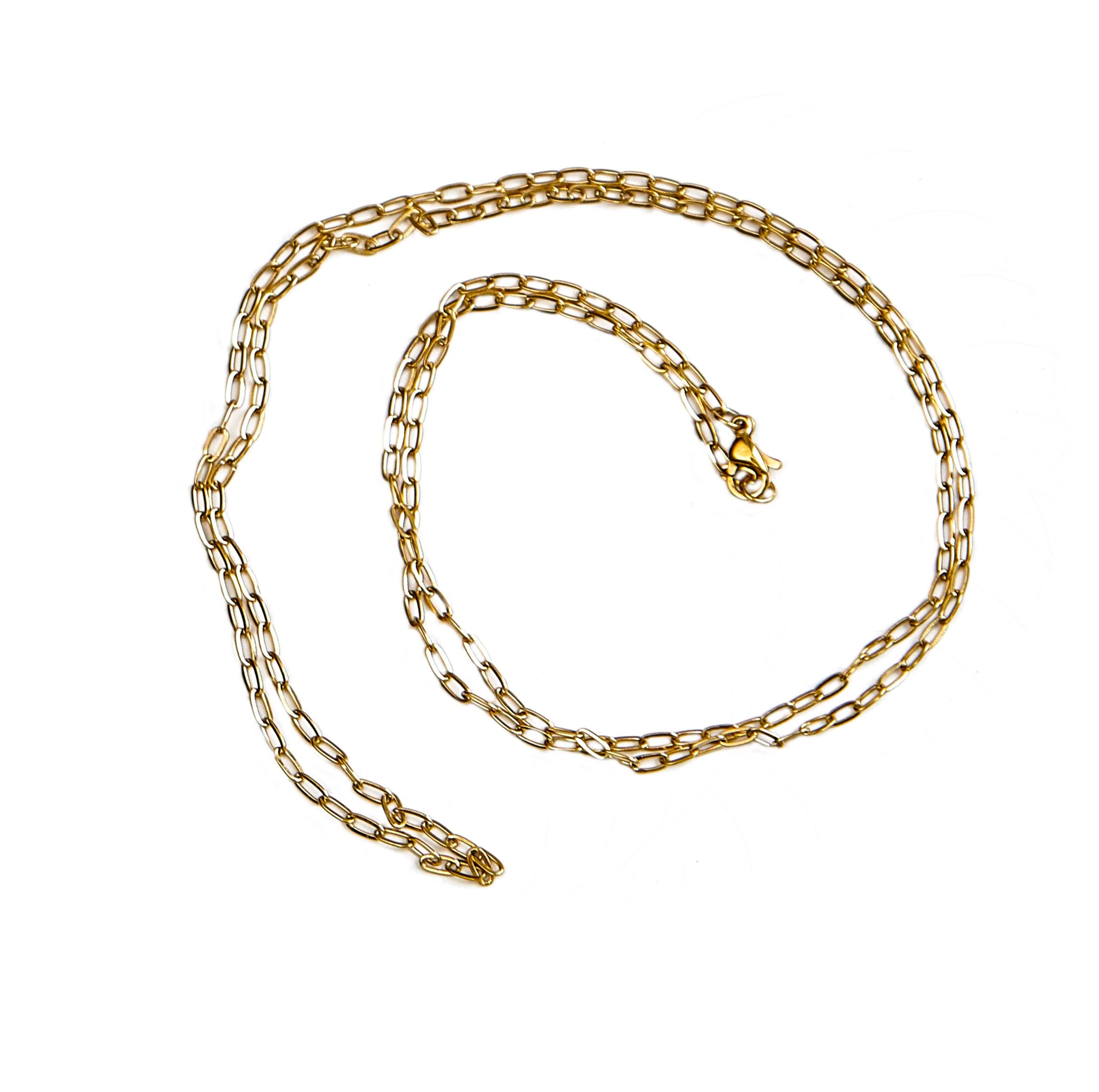 Het kettinkje van edelstaal met balletjes/schakels is er in 45cm en in 90cm, beide maten hebben een verlengstukje van 5cm. Het kettinkje met balletjes is 80cm lang/1,5mm dik en die met schakels 67cm/2mm.